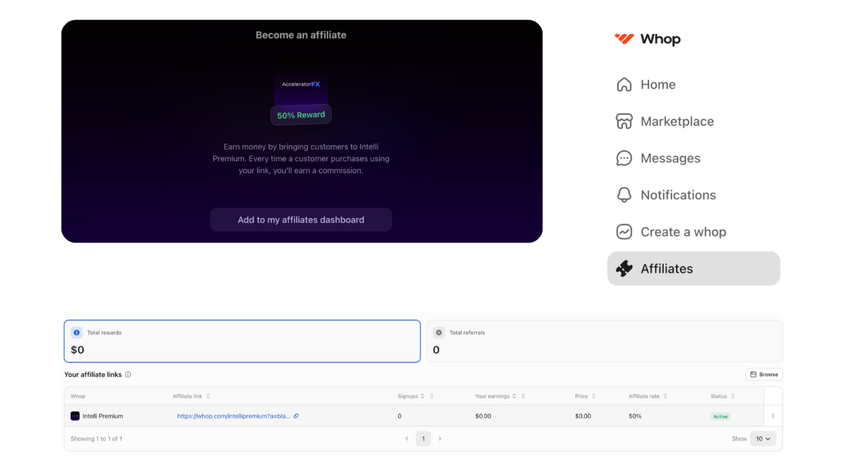 Use the 'Create whop account' button below.Step 2 – Add our product to your affiliate dashboard.